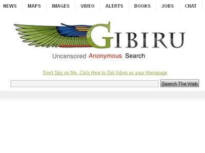 Gibiru est un moteur de recherche totalement non censuré mais chiffré qui empêche les fuites de données à des tiers. Il fonctionne plus rapidement que la plupart des autres moteurs de recherche privés car il utilise la «recherche personnalisée Google» pour fournir son service, mais supprime toutes les méthodes de suivi suivies par Google.