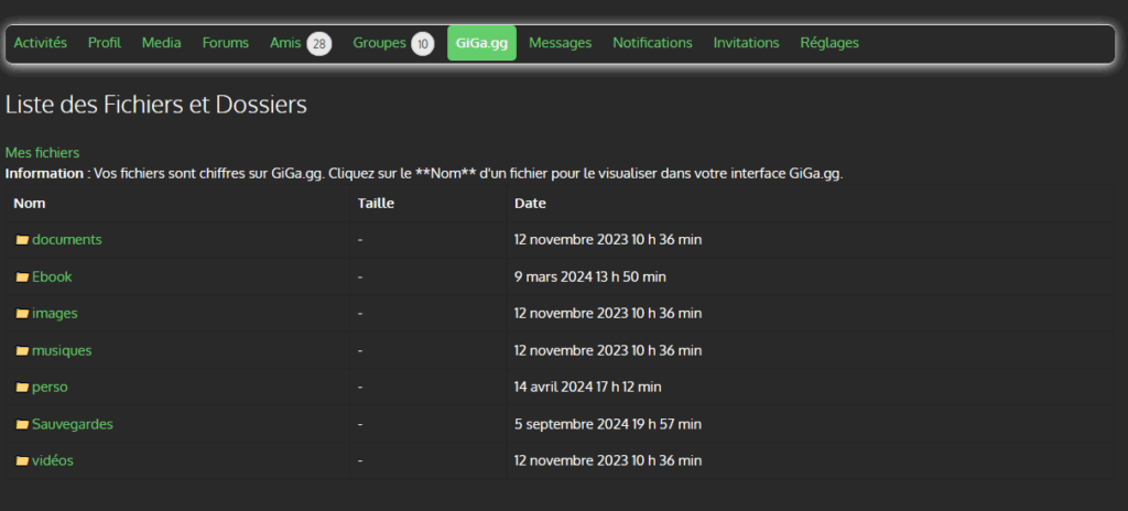 Vous aurez également un aperçu de vos fichiers sur la page Giga.gg de votre profil.